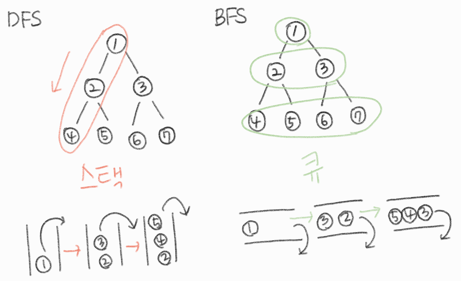 | 그래프 완전 탐색 | - 재귀 함수로 구현 - 스택 자료구조 이용(FILO) |